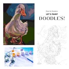 An 8" x 10" canvas with a paint-by-numbers outline of Doodles, the blind and beautiful duck, from Goosepond Mountain Sanctuary.