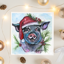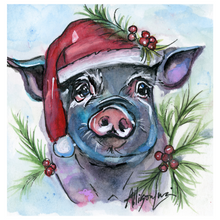 • Load image into Gallery viewer, Blue Santa Pig Christmas Holiday Art Print - Multiple Sizes