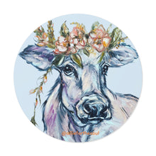 This beautiful cow's name is Heidi, named after a very special person. She wears a crown of flowers around her head and has the most soulful eyes.