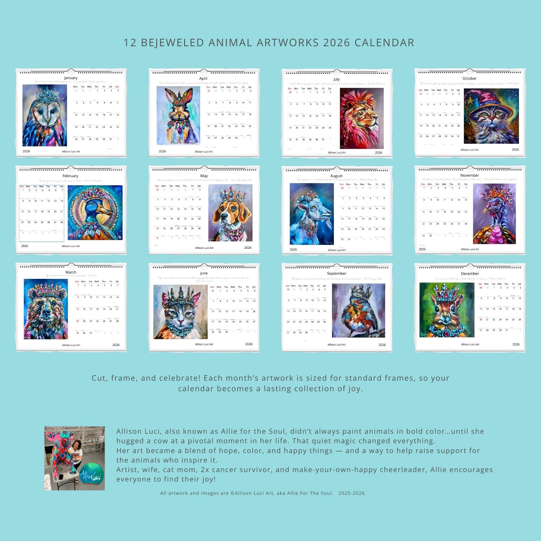2026 Bejeweled Animal Artworks Calendar Allison Luci